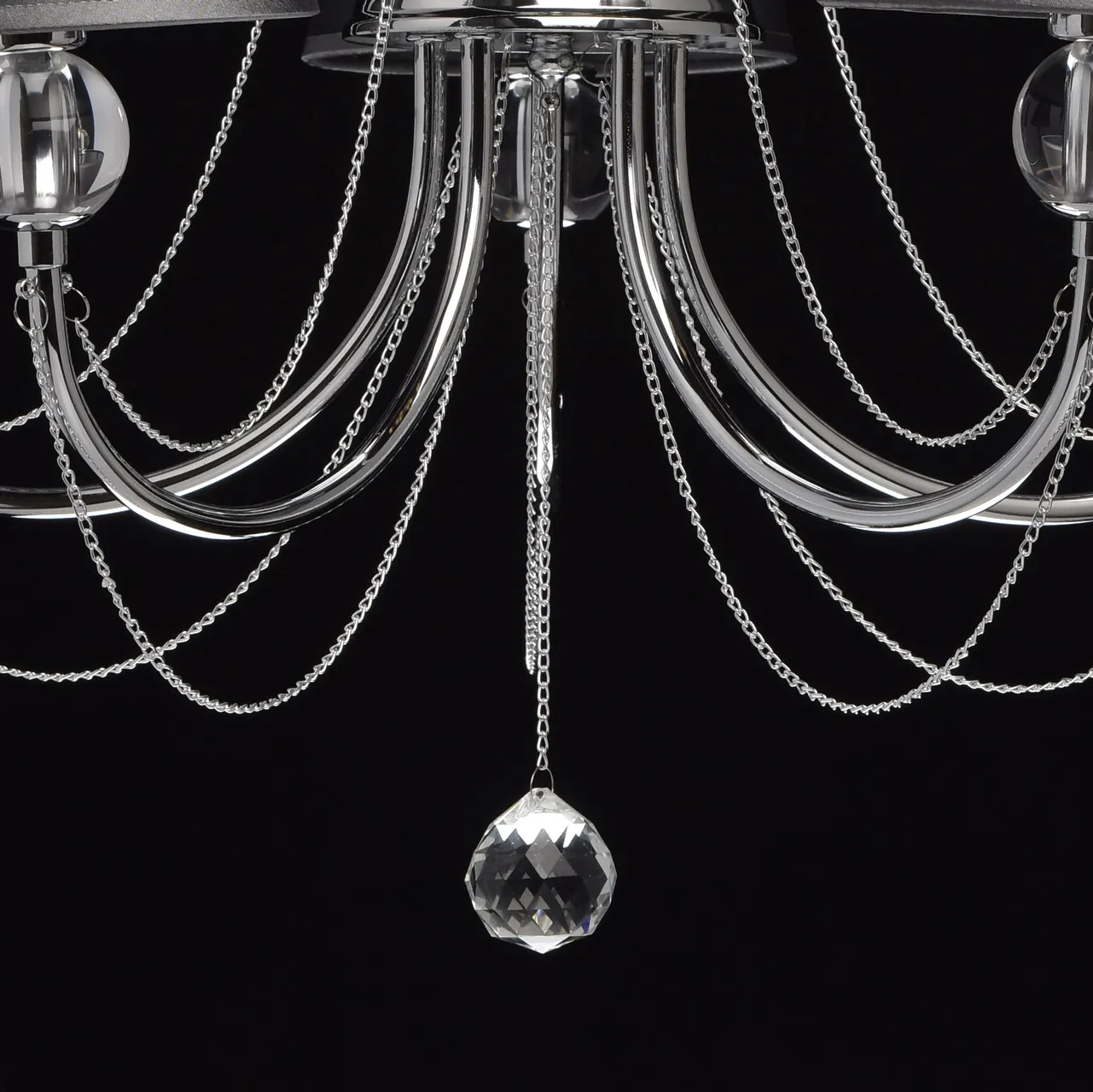 Металлическое основание цвета хрома. Плафоны - органза. Декор - хрусталь